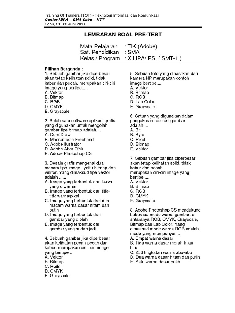 Soal tik kelas 12 semester 1 dan kunci jawaban. Check spelling or type a new query. We did not find results for: Maybe you would like to learn more about one of these?