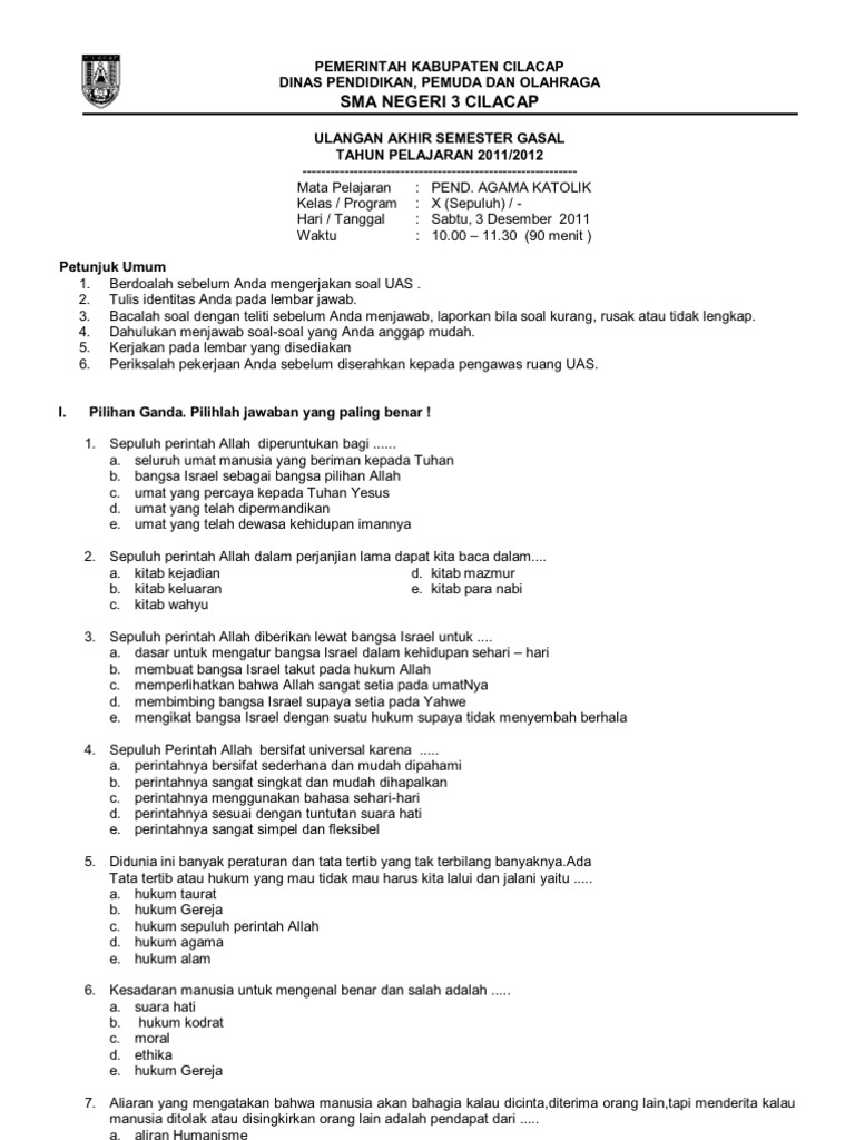 Contoh soal ujian semester pendidikan agama kristen dan katholik. Soal uas pas agama katolik kelas 10 sma smk semester 1 kurikulum. Kumpulan soal agama katolik sekolah dasar kelas 1 oleh. 1 sd agama katolik i. Diposting oleh antonius sigit novianto di 04.38. Soal agama katolik kelas 7 kurikulum 2013 guru ilmu sosial soal uts agama islam kelas. Pdf soal agama katolik kelas 5 sd mid ganjil cedi nius academia edu. Ulangan semester i kelas 1. Inilah soal agama katolik kls 6 sd. Ayah dan ibu adalah _____ kita 2. Pin di proyek untuk dicoba. Soal mid agama katolik (sd) mid semester agama katolik. Oleh sebab itu, di bawah ini kami hadirkan contoh soal ujian semester i (gasal) pendidikan agama katolik kelas 6 sd (sekolah dasar).